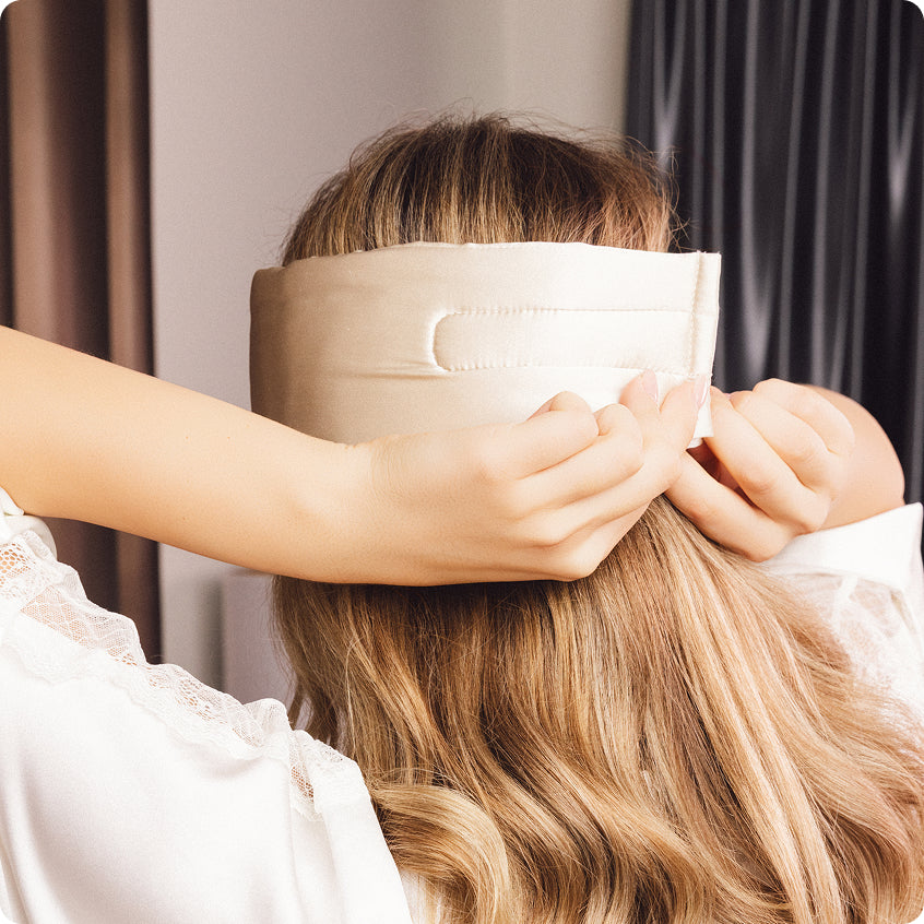 Uzliec pirms miega, noregulē jostu tā, lai būtu ērti un gaisma neiekļūtu.