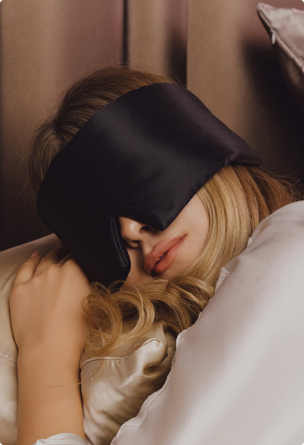 Maska izgatavota no dabīgā 22 momu mulberry zīda - tā ir īpaši maiga, elpojoša un hipoalerģiska viela, kas nedara kairinājumu ādai un palīdz novērst acu apvidus pietūkumu un grumbas.